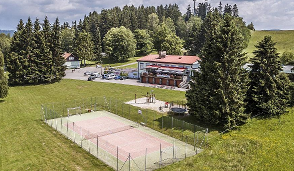 Přímo před hotelem se nachází dětský koutek s pískovištěm a multifunkční sportovní hřiště.