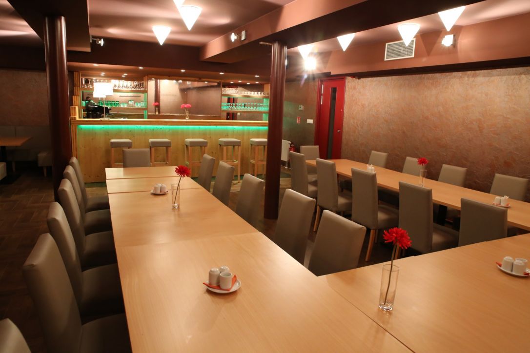 V suterénu hotelu se nachází větší konferenční místnost s kapacitou pro skupinku do 40 osob. Tyto prostory lze přizpůsobit dle Vašich požadavků podle typu probíhající akce, například pro školu, divadlo, jednací stůl, slavnostní tabuli či jednotlivé stoly.