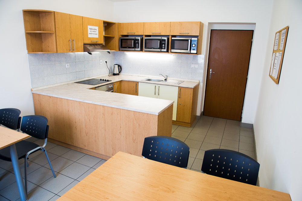 Máme pro Vás k dispozici 66 dvoulůžkových pokojů s vlastním sociálním zařízením, ledničkou, tv, komunikačním telefonem a přípojkou k internetu. Ubytovaným je k dispozici na každém patře nadstandartně vybavená kuchyňka (ubytování s kuchyňkou Vysočina). K přípravě jídla můžete využít mikrovlné trouby, sklokeramickou desku nebo elektrickou troubu (ubytování s vlastním vařením Vysočina). Místo klíčů dostanete čipovou kartu, která Vám zajistí přístup jak na ubytovnu a Váš pokoj, tak i do všech společně přístupných místností, jako je prádelna se sušárnou, televizní místnost, kolárna či herna. Prádelnu se sušárnou můžete využít zdarma. K dispozici jsou 4 pračky a 4 sušičky prádla, žehlící prkna se žehličkami.