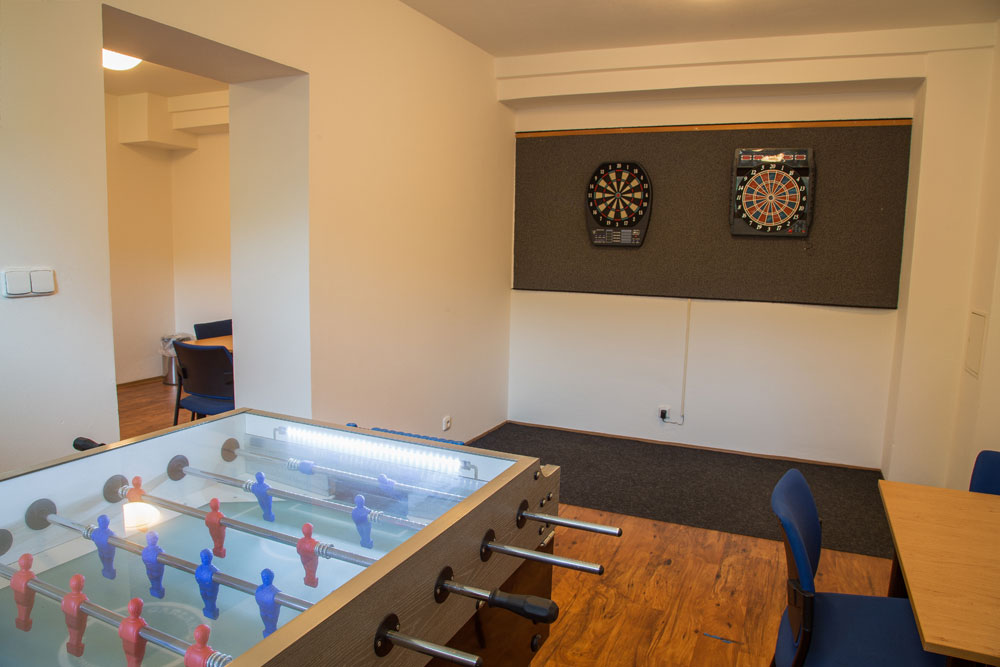 Pro chvíle oddechu lze navštívit volně přístupnou televizní místnost, zahrát si kulečník, elektronické šipky, stolní fotbal, zacvičit si v posilovně, nebo si jen tak posedět s přáteli u kávy či cigarety v herně, kde se může jako jediné místnosti na ubytovně kouřit.