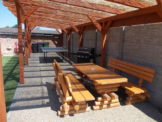 Ubytování Na Kovárně nabízí ubytování ve 4 apartmánech: apartmán č. 1 a č. 3 disponuje manželskou postelí a 2 jednolůžky, v apartmánu č. 2 je 1 manželská postel a 3 jednolůžka, v apartmánu č. 4 jsou k dispozici 4 jednolůžka (ubytování v blízkosti Lednicko-Valtického areálu). Součástí každého apartmánu je moderně zařízená kuchyňská linka s mikrovlnou troubou, jídelním příborem, pánví, hrnci a talíři, moderní koupelna se sprchovým koutem, umyvadlem a WC (ubytování s vybavenou kuchyní Lednicko-Valtického areál). Každý apartmán je vybaven 60" plochou televizí s kabelovým připojením (ubytování s televizí Lednicko-Valtického areál). Hostům je k dispozici také venkovní bazén, venkovní posezení a gril (ubytování s bazénem a grilem Lednicko-Valtického areál). Pro děti je připraveno dětské pískoviště a houpačky (dovolená s dětmi Lednicko-Valtický areál). Objekt taktéž obsahuje společenskou místnost s velkou plazmovou televizí (ubytování pro skupiny Lednicko-Valtického areál).V celém areálu je k dispozici Wi-Fi síť, která je pro hosty zdarma (ubytování s internetem Lednicko-Valtického areál). Parkování u objektu je zdarma (ubytování s parkováním zdarma Lednicko-Valtického areál).