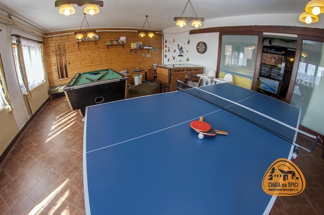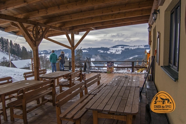 Součástí ubytování v chatě na Špici je společná jídelna s dětským koutkem. Přímo uvnitř chaty je restaurace, kde se podávají snídaně i večeře k polopenzím, které si můžete objednat spolu s pobytem (horská chata s restaurací Krkonoše). V letních měsících je k dispozici i posezení na terase, ze které je v případě dobrého počasí krásný výhled na Český ráj, taktéž je vidět i na dominantu Krkonoš - Kotel, dříve nazývaný Kokrháč. Dále je k dispozici posezení u grilu na zahradě za zvuku lučních kobylek (ubytování s grilováním Krkonoše). Umístění chaty na klidném a bezpečném místě, daleko od hlavní silnice, poskytuje ideální ubytování pro školní skupiny, které ocení také společenskou místnost s denním světlem k využití jako učebna (chata se společenskou místností Krkonoše). Chata na Špici poskytuje prostory pro firmy a firemní akce.