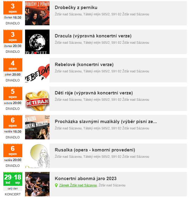 Program akcí v okolí 2023 - Ubytovna Žďas